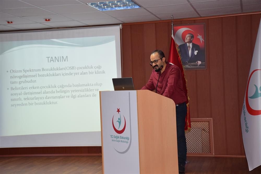 İl Sağlık Müdürlüğü Ruh Sağlığı Birimi koordinasyonunda; OSB’nin erken tanı ve tedavisi hakkında tüm sağlık personeline farkındalık oluşturmak için ilimizdeki Aile Hekimleri ile Aile Sağlığı Çalışanlarına, Artvin Devlet Hastanesi’nde görevli Çocuk ve Ergen Psikiyatrisi Uzmanı Dr. Ali Erol tarafından Otizm Spektrum Bozukluğu Semineri düzenlendi.