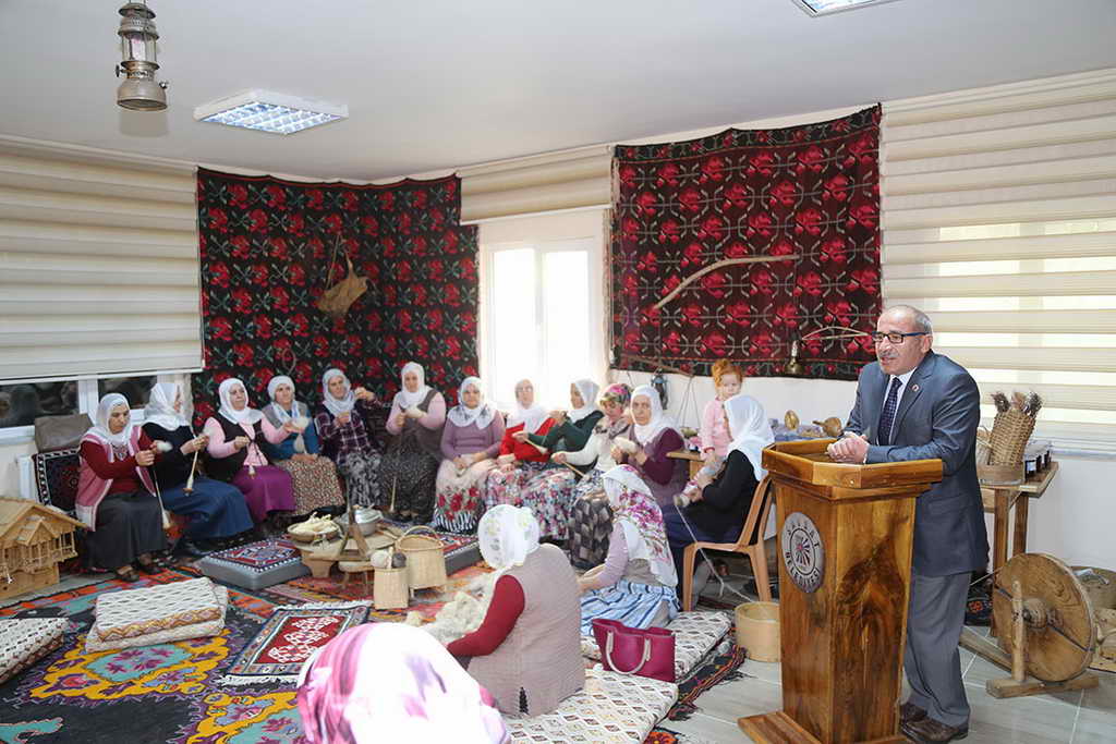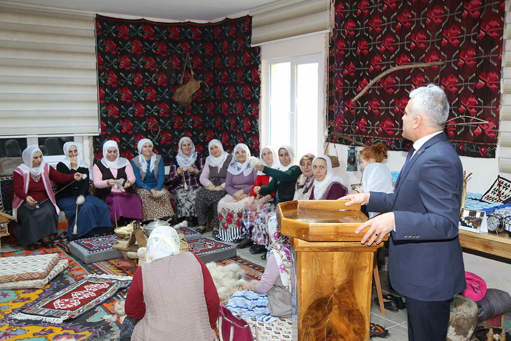 Erkan Evran’ın konuşmasının ardından konuşma yapan Şavşat Belediye Başkanı Ahmet Sinan Öztürk: “İŞKUR, Milli Eğitim ve Halk Eğitim gibi paydaş kurumlarla, sizlerle burada bir şeyler üretme çabasındayız. Şavşat’ta hanımlar %70 gibi bir çoğunlukla ticarette hakimler. Bizim amacımız üretimde de kadınlarımızı ön plana çıkarmak ve bir şeyler üretmelerine yardımcı olmaktı.