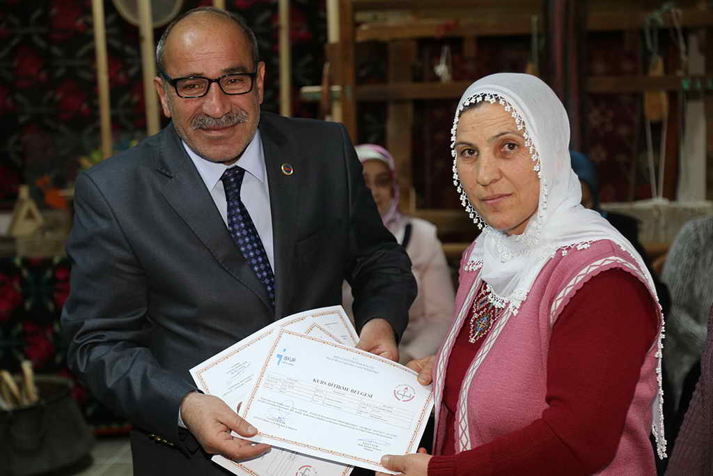 Şavşat Belediyesi ve İŞKUR İl Müdürlüğü iş birliği ile Ülkü Ulusoy Kadın Eğitim Yaşam Merkezi’nde açılan Kilim Dokuma Kursu, Bıçakçılık Kursu ve İp Boyama Kursları’nı başarıyla tamamlayan 43 kursiyere Kurs Bitirme Belgeleri düzenlenen törenle dağıtıldı.