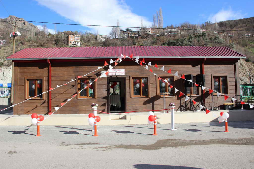 Protokol konuşmalarını tamamladıktan sonra kurdele kesilerek 37 üyesi ve aracı olan Kooperatif hizmet binası hizmete açıldı.