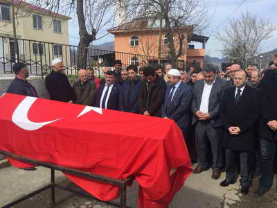 Erdoğan’ın Türk Bayrağına sarılı naaşı Borçka Taraklı köyünde Cuma Namazı sonrası kılınan cenaze namazı akabinde aile mezarlığında toprağa verildi.