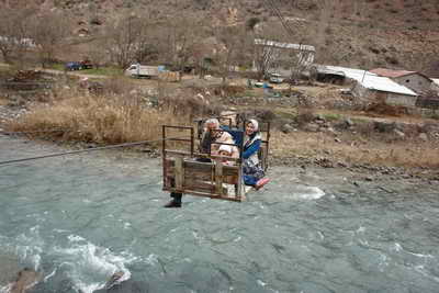 Artvin'in Yusufeli ilçesi İşhan köyünde oturan Koç ailesi, ulaşımlarını Çoruh Nehri üzerine kurdukları 'varangel' olarak bilinen ilkel teleferikle sağlıyor.