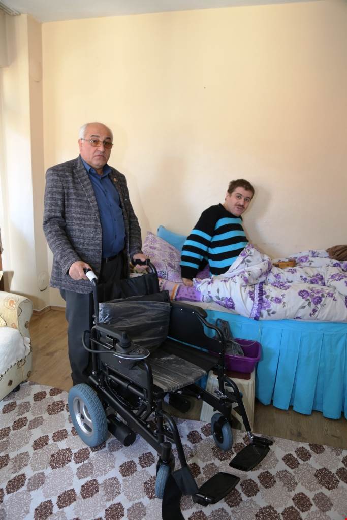 Daha sonra Vakıf Müdürü Yaşar ile Muhtar Kalaycı akülü sandalyeyi Bakır’ın ikamet ettiği evine götürerek teslim etti.