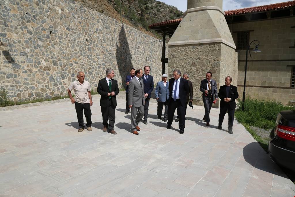 Vali Doğanay ve beraberindekiler daha sonra Deriner Barajı'nda bir süre önce su tutulmaya başlanmasıyla su altında kalmaması için aslına uygun olarak yeni yerleşim yerine nakledilen Osmanlı dönemine ait eserler arasındaki yaklaşık 150 yıllık Zeytinlik Köyü Camisi'ni ziyaret etti.