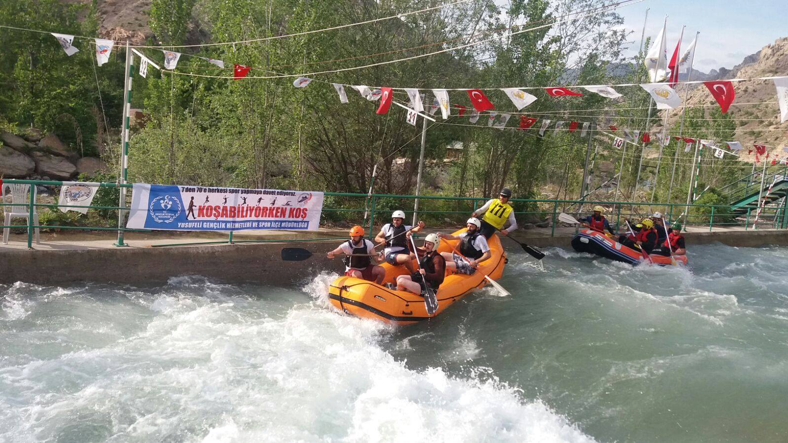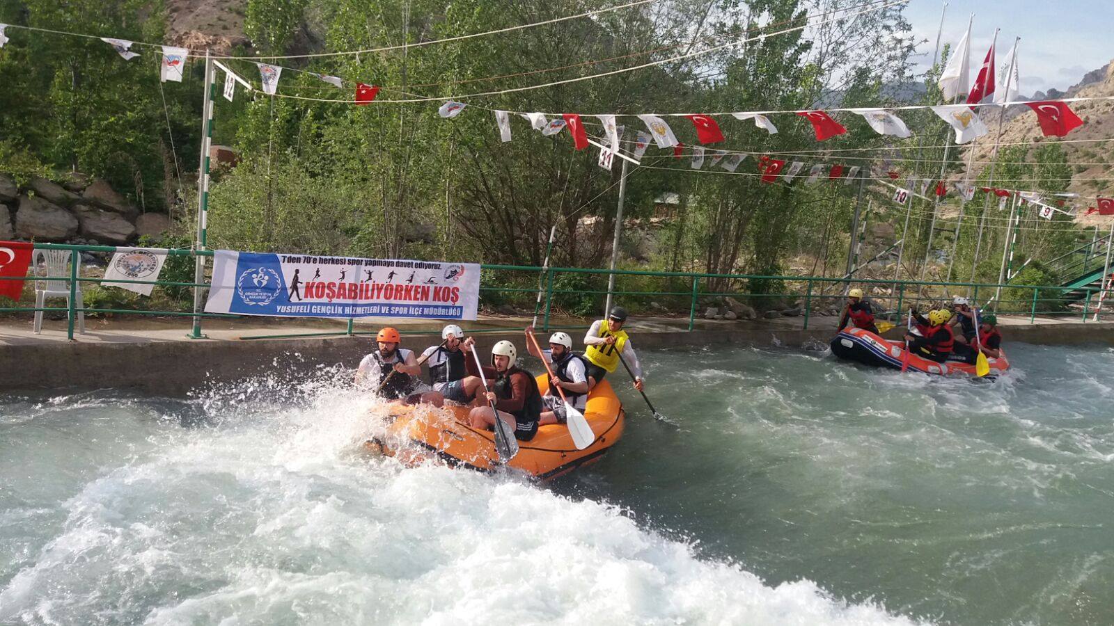 Bu yıl ikincisi düzenlenen Kurumlar Arası Rafting Yarışları Şenliği’ne; Esnaf ve Sanatkarlar, Şamiyelciler, Şehit Salih Hüseyin Parça Anadolu Lisesi, Yusufeli Dağcılık, Belediye, Yusufeli Meslek Yüksek Okulu 1, Yusufeli Meslek Yüksek Okulu 2, Yusufeli Off Road, Yusufeli Seçim Kurulu, Adliye, Turkcell, İl Milli Eğitim Müdürlüğü, Yörükler, Dereye Aşağı Gençlik Merkezi, Afad Artvin, Gençlik Spor, TÜGVA, KYK, Çoruh Üniversitesi, Yusufeli Emniyet, Gıda Tarım Hayvancılık İlçe Müdürlüğü, Dikina Çimanlar Gençlik Spor olmak üzere 24 erkek, Gıda Tarım Hayvancılık İlçe Müdürlüğü Bayan takımı olmak üzere toplamda 25 takımın katıldığı yarışlar renkli görüntülere sahne oldu. Gençlik Hizmetleri Spor İl Müdürü Bahattin Yetim’de kendi kurumunun takımında yer alırken, rafting şampiyonasına katılımın yüksek olması ve vatandaşların ilgisinin büyük olmasından dolayı duyduğu memnuniyeti dile getirdi. Takımların kıyasıya mücadele ettiği yarışlar da birinciliği Dikina Çimanlar Gençlik Spor birinciliği, İl Milli Eğitim Müdürlüğü ikinciliği, Meslek Yüksel Okulu 1 Yerelciler üçüncü oldu. İlçe merkezi Atatürk Anıtı önünde yapılan madalya töreninde konuşan Yusufeli Kaymakamı Eyüp Kaykaç, “Festivalimiz tüm hızıyla devam ediyor, ben iki kişiye teşekkür etmek istiyorum. Birincisi Yusufelili gençlere teşekkür ediyorum. Çünkü sportif anlamda başarılarının yanında ahlakı olarak da her zaman takdir edeceğimiz bir gençliğimiz var. İkinci olarak da bu gençlere her türlü desteği veren kıymetli Başkanımız Eyüp Aytekin Bey’e teşekkür etmek istiyorum. Bugün ki rafting şenliğine katılan ve kıyasıya mücadele eden bütün takımlarımızı tebrik ediyorum” dedi.