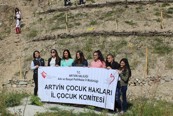 Artvin Çocuk Hakları İl Komitesindeki çocuklar “Milli Egemenlik Haftası’nda” fidan diktiler. Geleceğin büyük ağaçlarını minik elleriyle diken çocukların mutlulukları görülmeye değer oldu.
