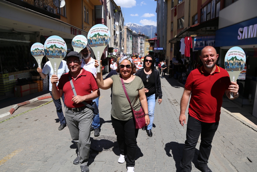 Trafiğe kapatılan Cumhuriyet Caddesi’nden flama ve hazırladıkları dövizlerle Halitpaşa Meydanı’na kadar yürüyen sendika temsilcileri ve vatandaşlar, gün gelecek devran dönecek zalimler halka hesap verecek. Direne Direne Kazanacağız, Cerattepe Geçilmez Artvin Halkı Yenilmez, İşçiyiz haklıyız kazanacağız” gibi sloganlar atıldı.