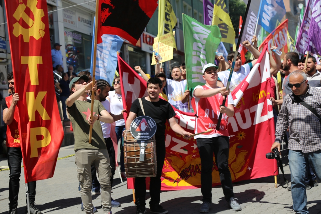 Miting alanında DİSK adına konuşan Selim Bilgin, “Artvin Cerrattepe’de çıkartılması planlanan madene ve Orman İşçileri yasası ve OHAL” konularına değindi. Demokrasi, adalet, hukukun üstünlüğü, eşitlik ve özgürlüğü savunmak işçi sendikalarının alanlarda olduğunu söyledi. Bilgin, işçi sınıflarının üzerindeki baskı ve zulmün biran önce kaldırılıp, yaşam kalitesinin yükseltilesini gerekliğini dile getirdi.