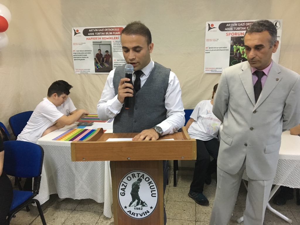 Gazi Ortaokulu ile TÜBİTAK ‘ın ortaklaşa yaptığı 4006 Bilim Fuarının açılış konuşmasını Gazi Ortaokulu Matematik öğretmeni İsmail Kuşçu yaptı.