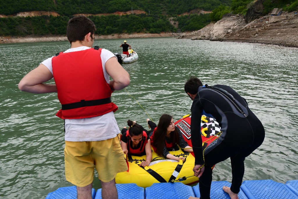 Öğrenciler, baraj gölündeki aktivitelerin yanı sıra, baraj gölü üzerindeki "zipline" hattını kullanıp adrenalin dolu dakikalar yaşayarak yaklaşan sınavlar öncesi stres attı.