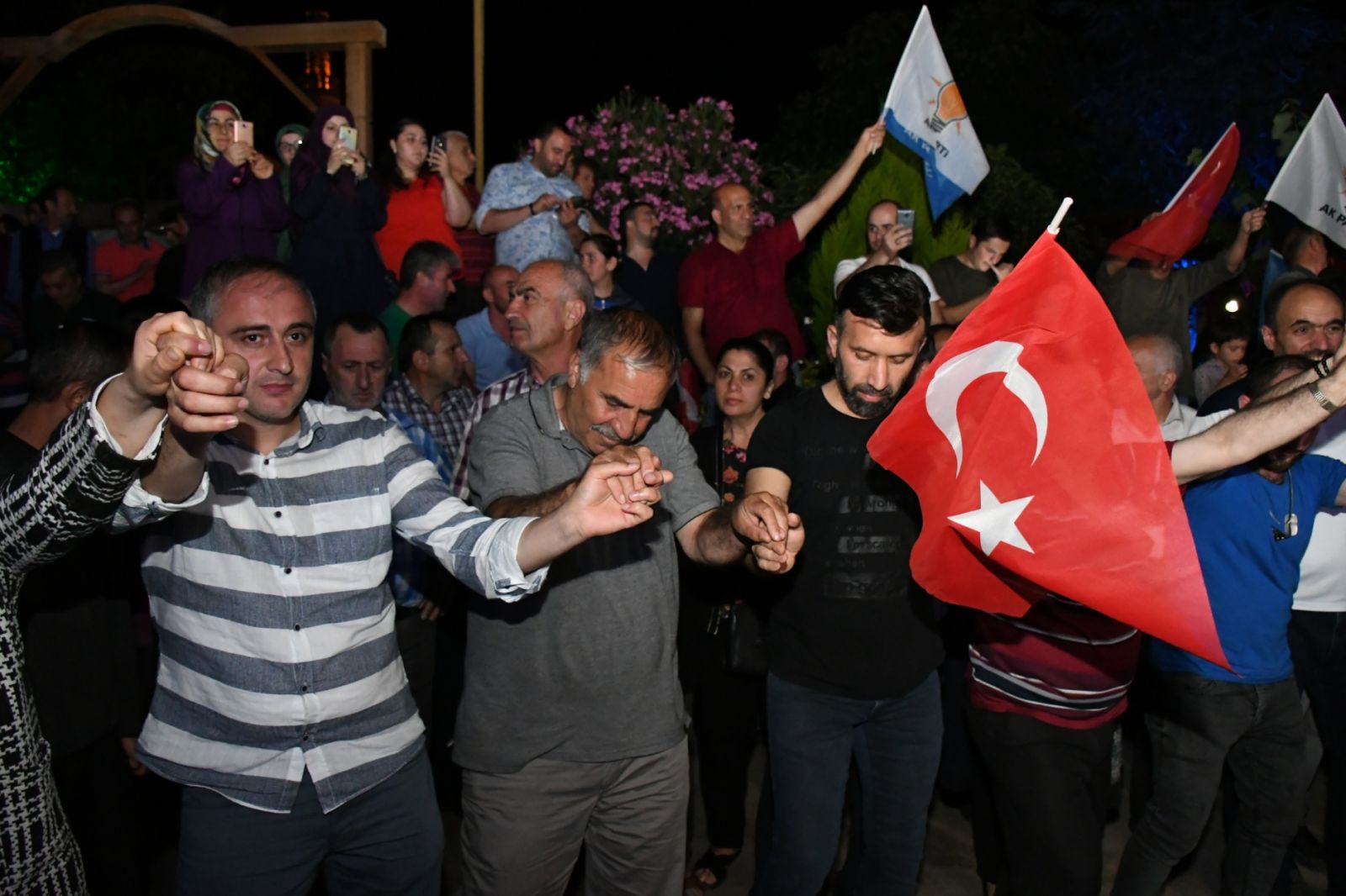 Konuşmaların ardından AK Partililer zaferlerini halaylarla kutladılar.