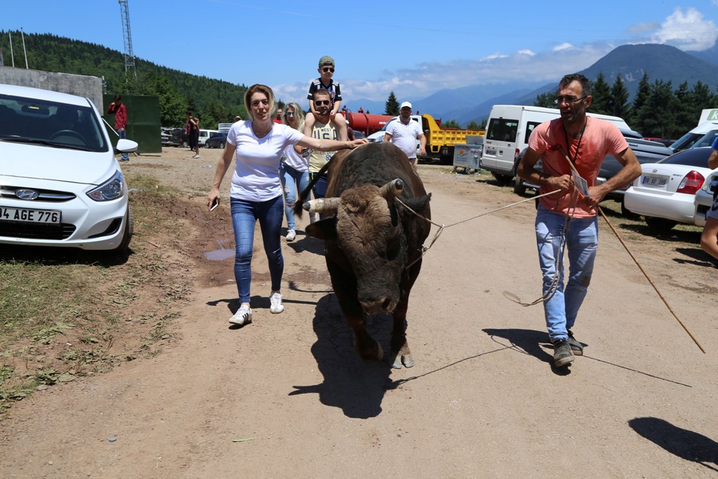 Artvin Belediyesi organizasyonunda Geleneksel Boğa Güreşlerini Yaşatma ve Yaylalarını Koruma Derneğince bin 200 rakımlı Kafkasör Yaylası'nda, cumartesi günü başlayan boğa güreşlerinin son gününde, "Büyükorta", "Başaltı" ve "Baş" boğa kategorilerinde 54 doğa kozlarını paylaştı.