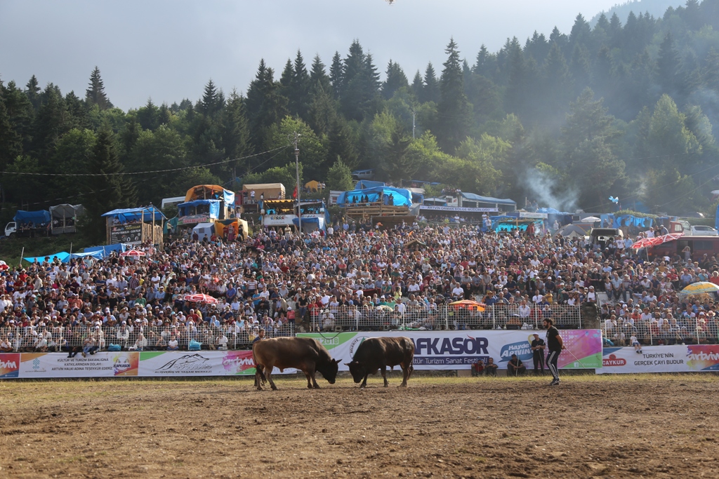 Kafkasör Yaylasında gerçekleştirilen ödüllü boğa güreşlerine Artvin'in yanı sıra Rize ve Erzurum'dan getirilen 130 boğa katıldı. 50 ile 100 bin lira arasında fiyatları değişen boğalar, güreşler öncesi kilo ve boynuz kontrolünden geçirildi, sivri boynuzlular zımparalandı. Boğalara verilen Mario Gomes, Behlül, Dimitri, Haydut, Miroğlu, Eşkıya, Ernosto, Cerattepeli, Afrin gibi ilginç isimler dikkat çekti. Yaklaşık 20 bin kişinin izlediği güreşlerin son gününde Büyük Orta, Başaltı ve Baş kategorilerinde 53 boğa arenada kozlarını paylaştı.