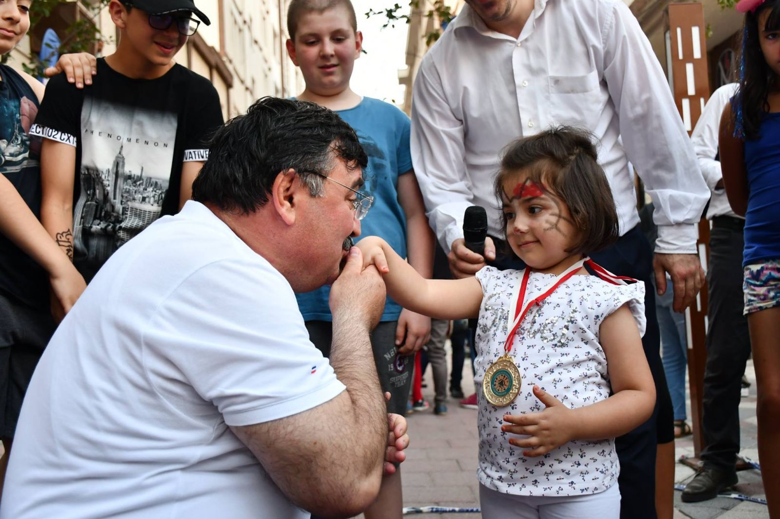 Bu hafta sonu doyasıya eğlenebilmeniz için bu caddeyi oyun parkı haline getirdik. Oynayacağınız bu oyunlarda birinci ve ikinci olan çocuklarımıza madalya hediye edeceğiz bu yaşta madalya kazanman herkese nasip olmaz. Çocuklarımıza bol eğlenceler diliyorum." dedi.