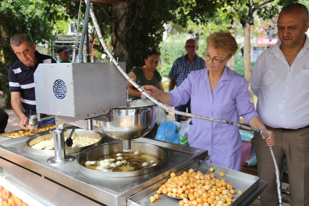 Merkez Camii önünde düzenlenen lokma ikramı CHP eski kadın kolları başkanı Nebahat Katırcı’nın organizasyonunu yaptığı şirket tarafından düzenlendi.