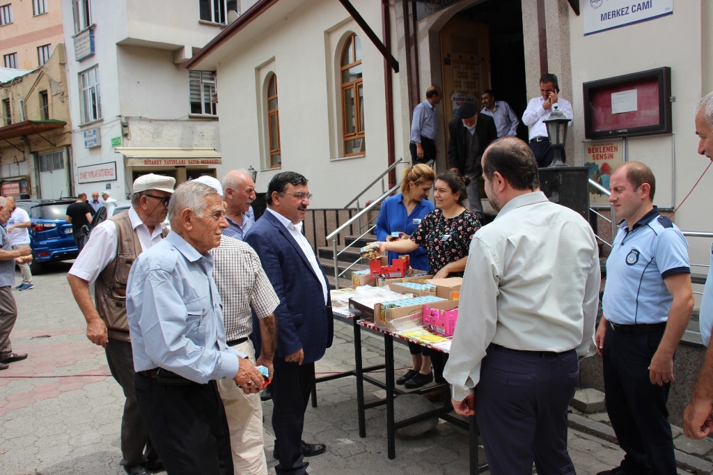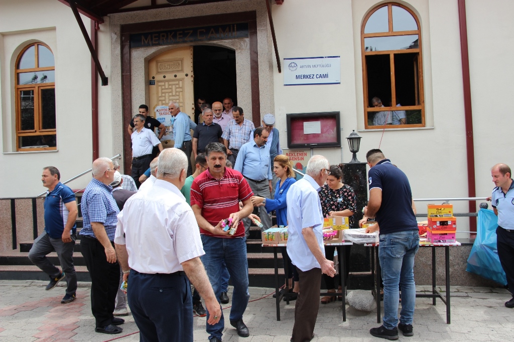 Cami çıkışında Artvin Belediyesi vatandaşlara lokma ikramlarında bulundu.