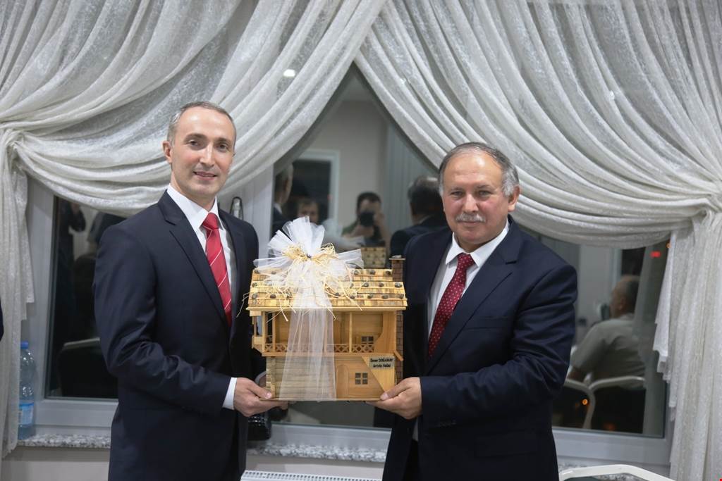 Konuşmalar sonrası Vali Doğanay, tayinleri çıkan Başsavcı Çelik ve Ağır Ceza Mahkemesi Başkanı Yılmaz'a plaket ve üzerinde Artvin Valisi Ömer Doğanay yazılı ahşaptan yapılmış maket ev hediye etti.