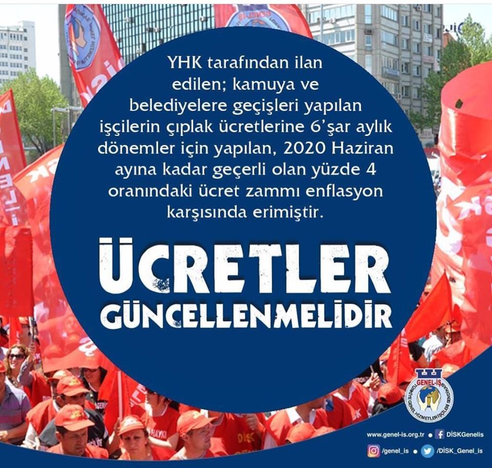 Özellikle kamuda personel çalıştırılmasına dayalı Hizmet alımının sona erdirilmesi sonucu YHK tarafından ilan edilen 1 OCAK 2018- 30 HAZİRAN 2020 arası dönemde 6 şar aylık yüzde 4 oranında yapılan artışlar yüksek enflasyon ve hayat pahalılığı karşısında işçileri ve ailelerini açmaza sürüklemiştir. Bugün den işçilerin reel ücretlerindeki erime yüzde 10 nu geçmiştir. Aynı durum Asgari Ücret içinde geçerlidir. Asgari Ücretle çalışan milyonlarca işçi yüksek enflasyon ve hayat pahalılığı karşısında son derece zor koşullardadır.