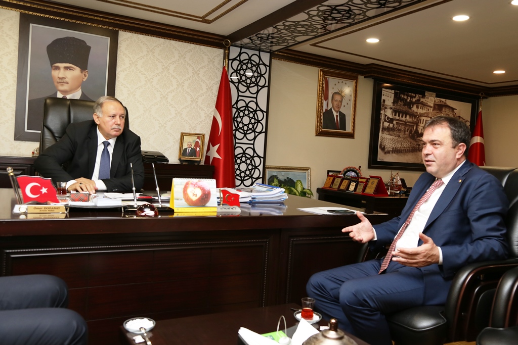 Başkanlar Kurt ile Dağ beraberindeki Aşık Coşari ile birlikte Vali Doğanay’ı ziyaret ederek, sazı Vali Doğanay’a takdim etti.