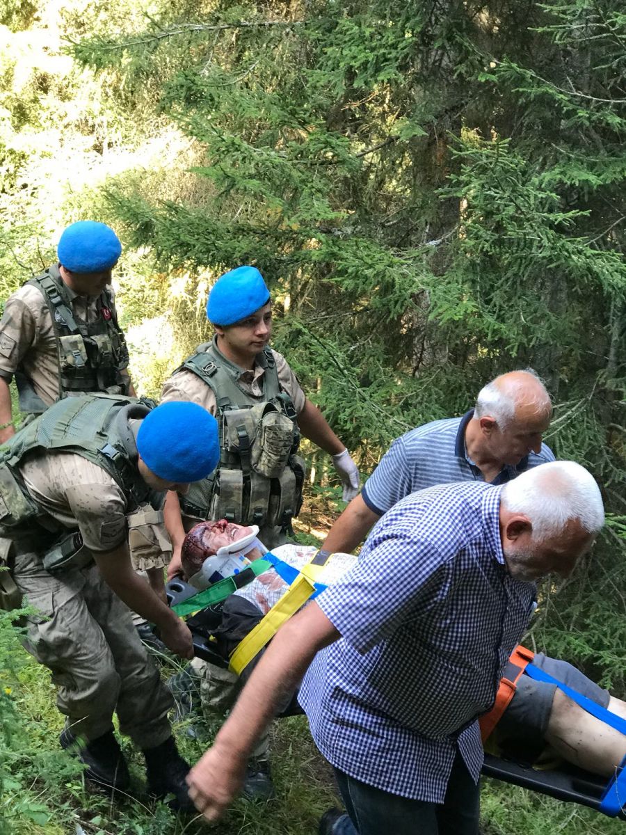 Vücudunun çeşitli yerlerinde kırıklar bulunan Aslan’ın tedavisi için Artvin Devlet Hastanesine ambulansla sevk edildi.