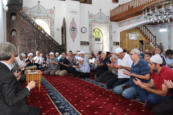 Diyanet İşleri Başkanlığı Mushafları İnceleme ve Kıraat Kurulu Başkanı Hafız Osman Şahin, Din İşleri Yüksek Kurulu Uzmanı Davut Kaya, İstanbul Haseki Abdurrahman Gürses Eğitim Merkezi Müdürü Osman Eğin’in Merkez Camiinde öğlen namazının ardından Kur’an ziyafetini sundular.