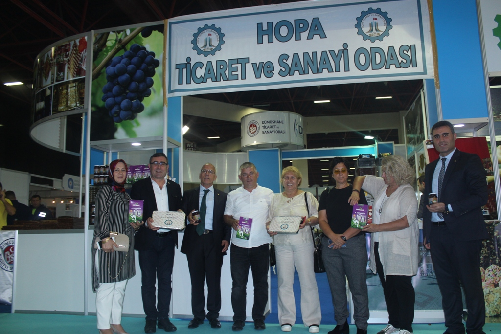 Hopa Ticaret ve Sanayi Odası Yönetim Kurulu Başkanı Osman Akyürek ve eşi Gülseven Akyürek, Meclis Üyesi Kemal Gazioğlu ve eşi Fatma Gazioğlu, Oda Genel Sekreteri Hamdi Yıldırım ve Bilgi İşlem Sorumlusu Hami Tatar’ın katıldığı Antalya Yörex Fuarında ülkenin dört bir yanından gelen coğrafi işareti alınan ve başvuruları yapılan yerel ürünlerin sergilendiği fuar büyük ilgi gördü.