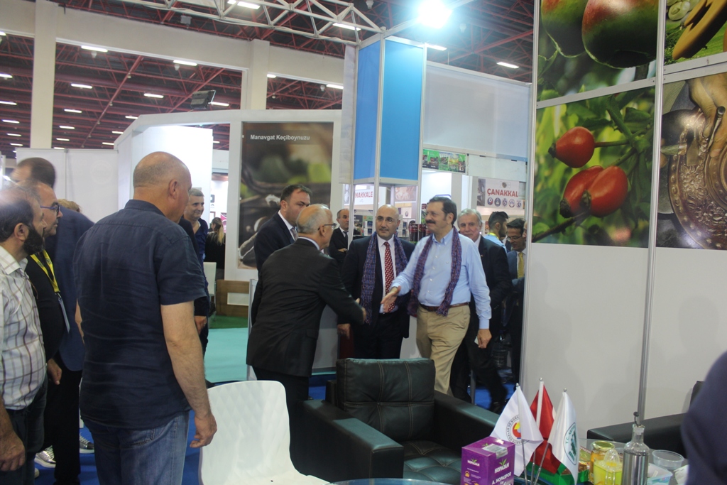 Fuar alanındaki stantları gezen Hisarcıklıoğlu Hopa standında Laz Böreği ile karşılandı. Hopa TSO Başkanı Akyürek TOBB Başkanına Hopa Laz Böreği ikram etti. Halk Bankası Genel Müdürü Osman Arslan’ın eşlik ettiği Hisarcıklıoğlu kendisine takdim edilen Hopa Laz Böreğini memnuniyetle kabul etti.