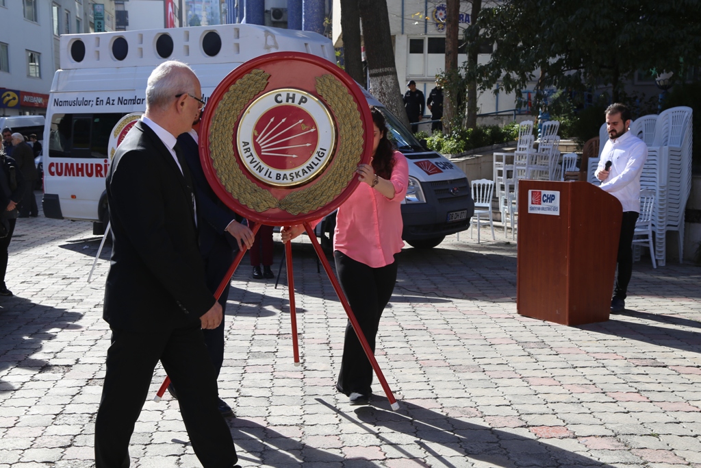 Artvin Valiliği önünde bulunan Atatürk anıtına çelenk sunma töreni saat 13.00’da gerçekleşti. Törene CHP İl Başkanı Ahmet Biber, Merkez İlçe Başkanı Cüneyt Öztürk, Kadın Kolları Başkanı Gülşen Kurul, Gençlik Kolları Başkanı Anıl Öztürk, CHP Artvin Belediyesi Başkan aday adayı Demirhan Elçin, ADD Artvin Şube Başkanı Ayla Varan, Yardım Sevenler Dernek Başkanı Yeşim Sancal, meclis üyeler ve çok sayıda vatandaş katıldı.