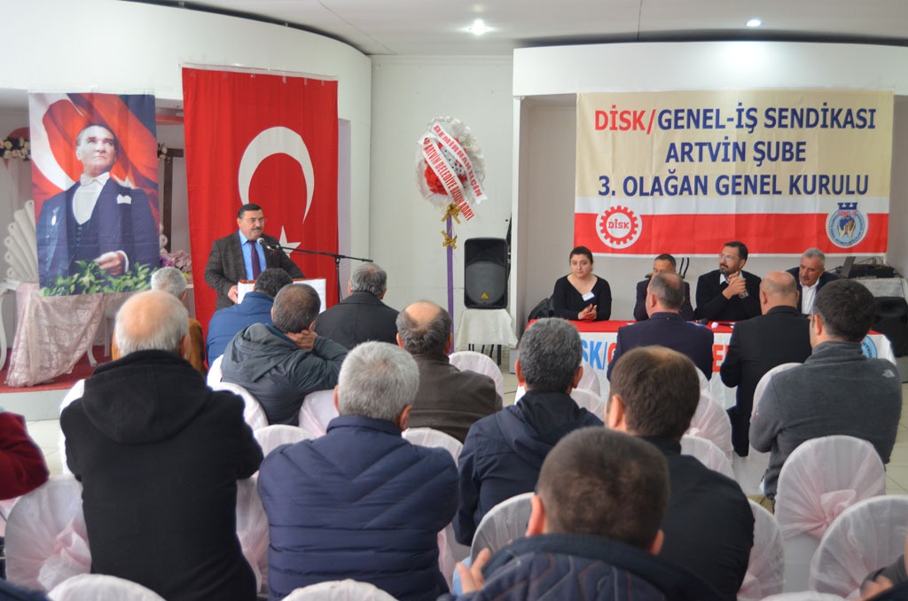 Artvin Doğa Restoranda yapılan DİSK Genel İş Sendikası Artvin Şubesi 3’üncü Olağan Kongresine, Türkiye Devrimci İşçi Sendikaları Konfederasyonu (DİSK) Genel Merkez Yönetim üyesi TİS Daire Başkanı Mahmut Şengül, Ankara 2 nolu Şube Başkanı Ozan Doğan, Disk Samsun Şube Sekreteri Yaşar Aslankaya, Artvin Belediye Başkanı Mehmet Kocatepe, Genel İş Sendikası Eğitim Daire Başkanı Hüseyin Yaman, Ardanuç Belediye Başkanı Yıldırım Demir, CHP İl Başkanı Ahmet Biber, CHP Artvin Belediye Başkan Adayı Demirhan Elçin, davetliler ve sendika üyeleri katıldı.