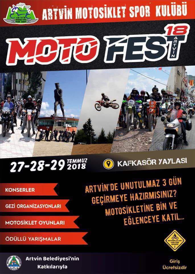 Artık geleneksel hale gelen Artvin Motosiklet Spor Kulübü tarafından organize edilen Artvin Moto Fest 18, 27 Temmuz 2018 Cuma günü (Bugün) başlıyor. Her yıl olduğ