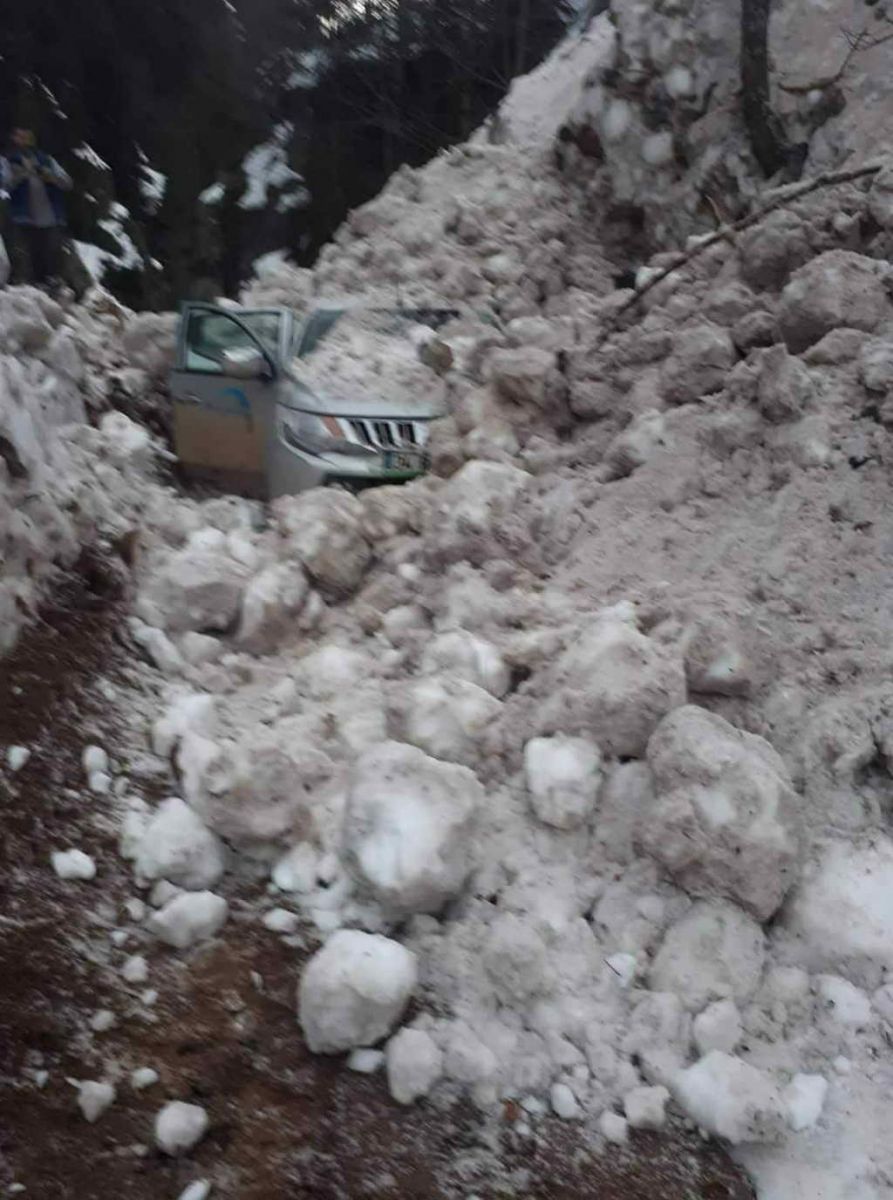 Çoruh TEDAŞ İl Müdürlüğü ekiplerinin içerisinde bulunduğu kamyonetin üzerine çığ düştü. 3 kişilik ekibin yara almadığı olayda, ka