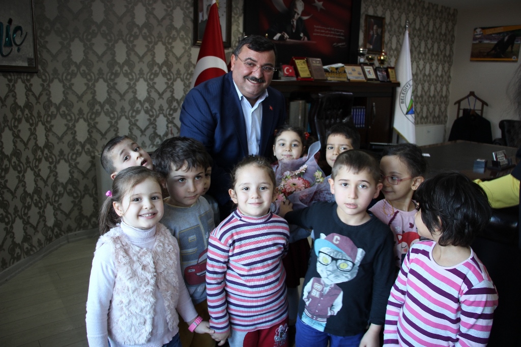 Çoruh İlkokulu Yıldızlar anasınıfı öğrencileri meslek grupları tanıma ve görevlerini öğrenme kapsamında Artvin Belediye Başkanı Mehmet Kocatepe’yi makamın
