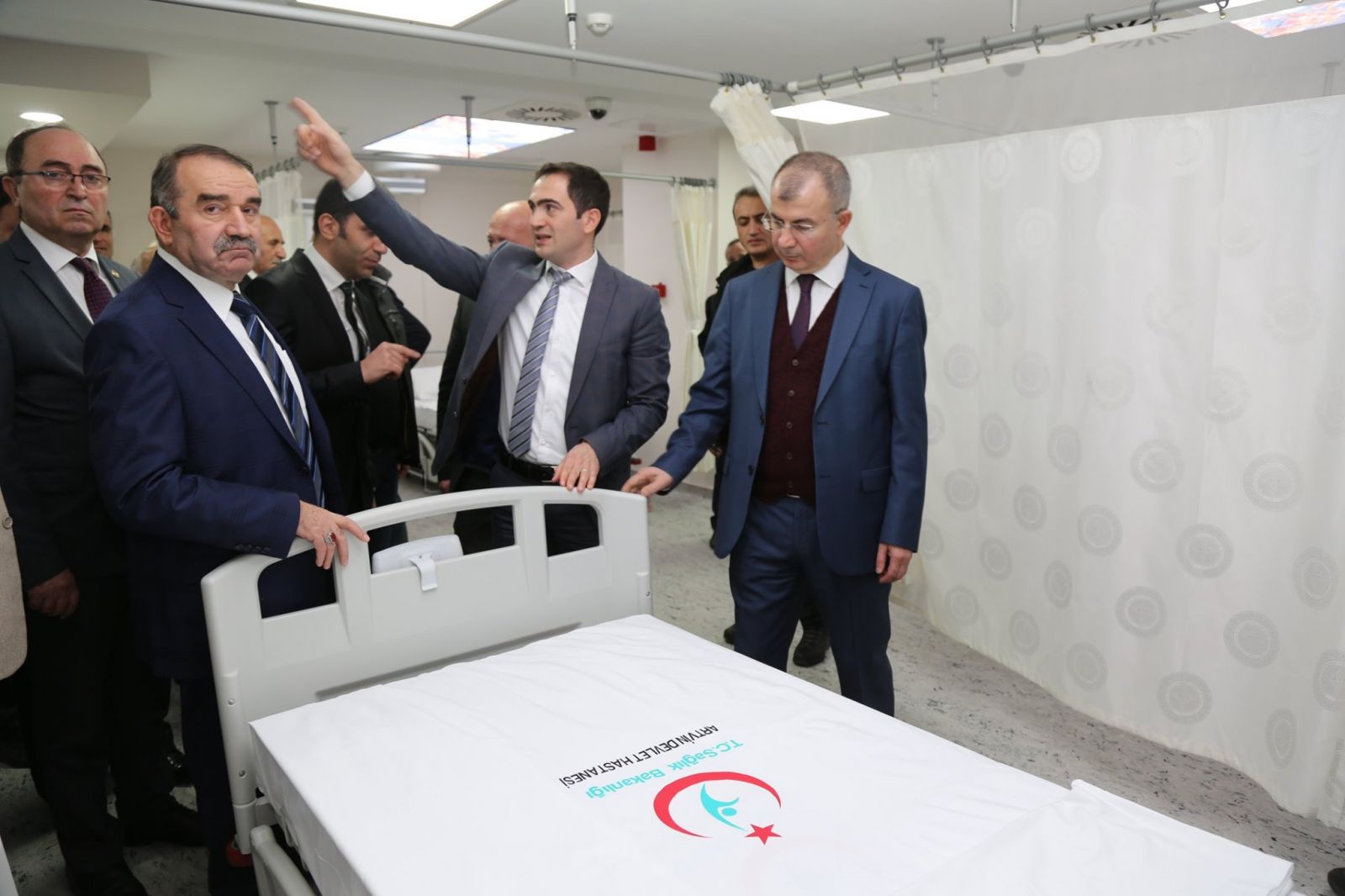 Yoğun Bakım Ünitesinin açılış kurdelasını kesen Vali Doruk, Cumhurbaşkanı Başdanışmanı Kışla, Artvin Milletvekili Balta, Artvin Belediye Başkanı Elçin, Artvin Cumhuriyet Başsavcısı Başbay, İl Sağlık Müdürü İrfan Akalın ardından bakım ünitesinde incelmelerde bulundu.