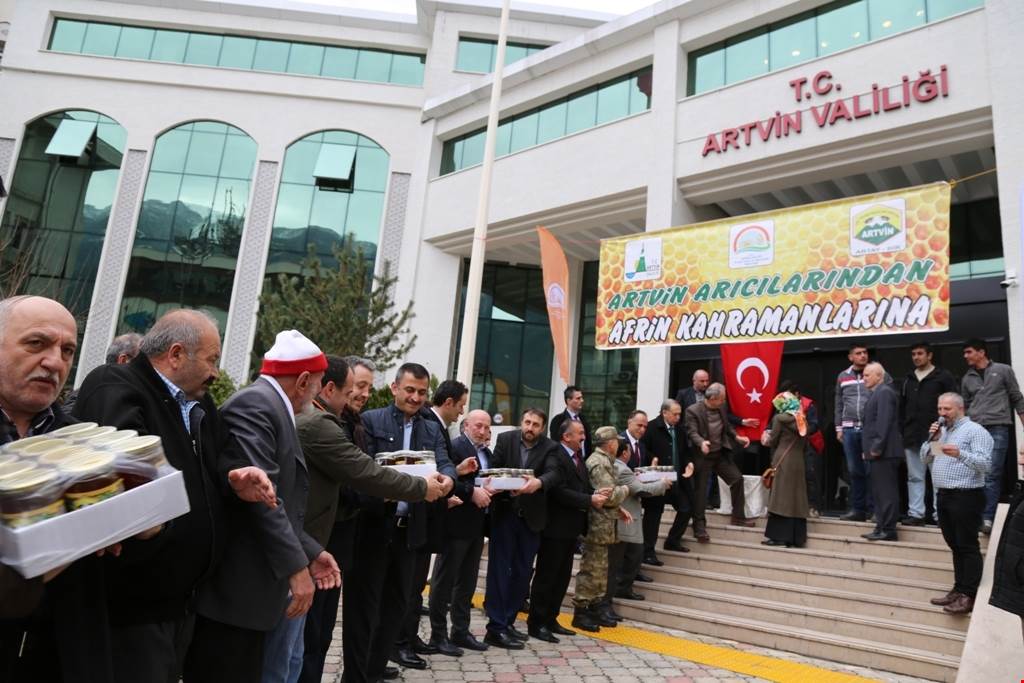 Türk Silahlı Kuvvetlerinin Zeytin Dalı Harekatı kapsamında Afrin’de yürüttüğü operasyona destek olmak amacıyla Artvin’den Afrin’e 1600 kilogram bal gönderildi.