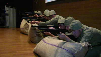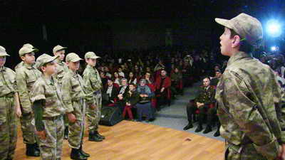 Okul salonuna geçen protokol, öğrenciler tarafından askeri üniforma ile sahnelenen gösterileri izlediler.