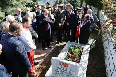 Garnizon Şehitliği'ndeki tören, şehit mezarlarının ziyaret edilerek karanfil bırakılması ve okunan Kur-an'ı Kerim'in ardından sona erdi.