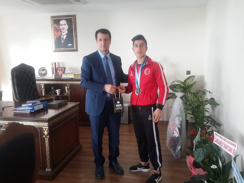 Ziyaretin sonunda Kaymakam Canpolat, Nuh Çakar’ı başarılarından dolayı hediye ile ödüllendirdi ve her zaman yanlarında olduğunu ifade etti.