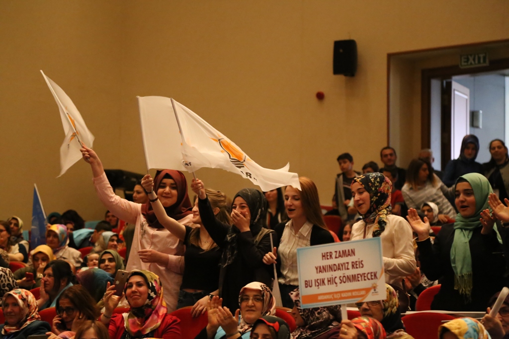 Şehitlerimize haklarını helal ettire bilmemiz için, bize bu güzellikleri yaşatan, ülkemizi uçurumun kenarından bu günlere taşıyan gecesi gündüzüne katan uyku bilmeyen Cumhurbaşkanımıza karşı bir vefa borcumuzu yerine getire bilmemiz için 2019’da Artvin’de yeni bir tarih yazmaya var mısınız? Hizmetlerle bir yere kadar gelirsiniz, cumhurbaşkanımız diyor ki iki şeyiniz eksik onlardan birisi hizmetleri millete anlatımı bir diğeri de milletin gönlünü kazanmak. İşte AK Parti bir adım daha ileri gidecek bu kadın kardeşlerimizin sayesinde olacak. Bu iki işi de en güzel becerecek olan bu davayı hizmetleri insanlara anlatacak olan sizlersiniz. Seçim günü değil şimdiden o kapılara uğramak gerekiyor” şeklinde konuştu.