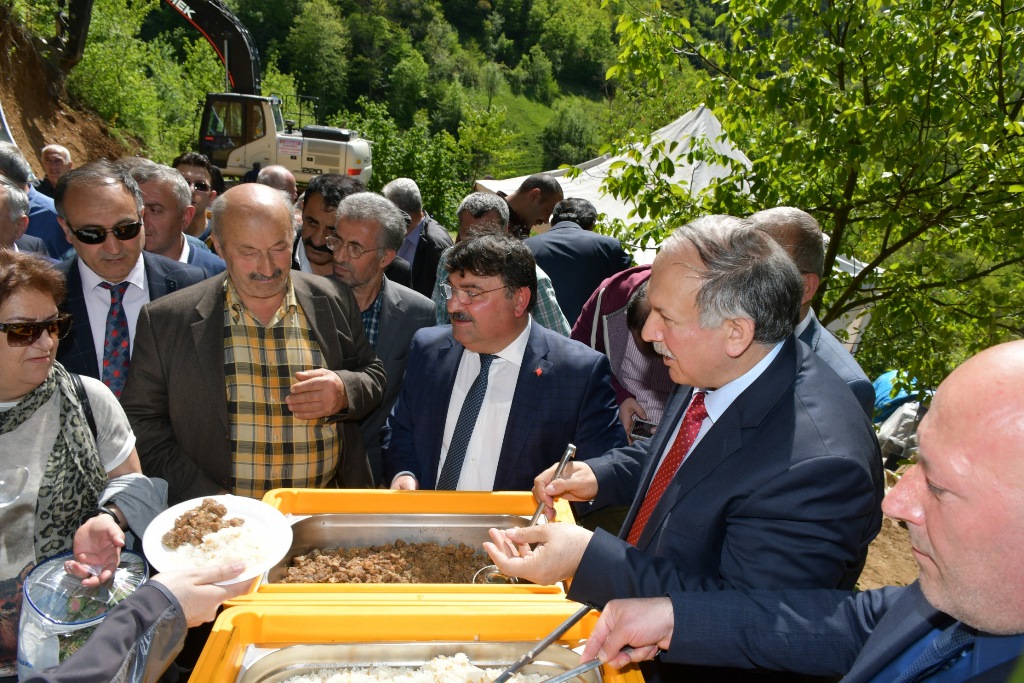 Programda yapılan konuşmalar ardından dua ve kurban kesimiyle ilk kepçe vurularak Bin 100 metre uzunluğunda 5 metre genişliğinde bağlantı yolu çalışmaları başladı. Törende davetlilere kavurma ve pilav ikram edildi.