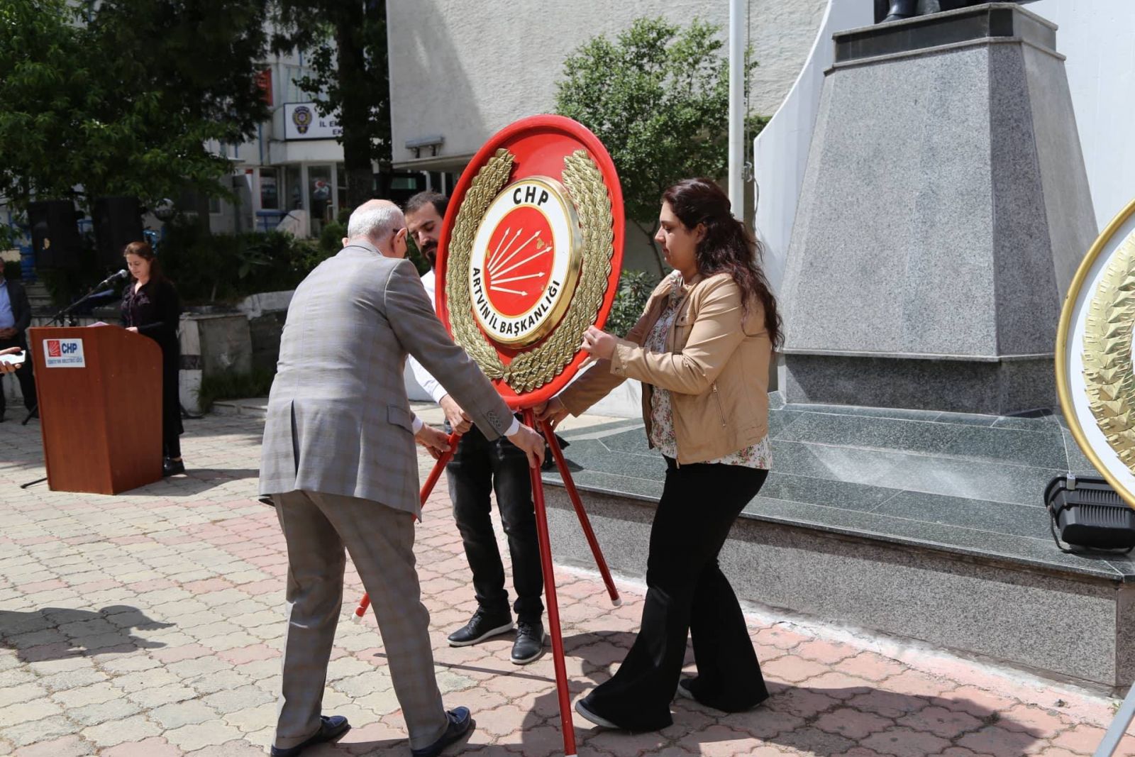 Çelenk programına CHP İl Başkanı Ahmet Biber, CHP Kadın Kolları Başkanı Gülşen Kurul, ADD Artvin Şubesi Başkanı Av. Ayla Varan, CHP Merkez İlçe Başkanı Cüneyt Öztürk, Artvin Faal Gazeteciler Derneği Başkan Yardımcısı Sami Özçelik, CHP Gençlik Kolları İl Başkanı Anıl Öztürk, partililer kazandı.