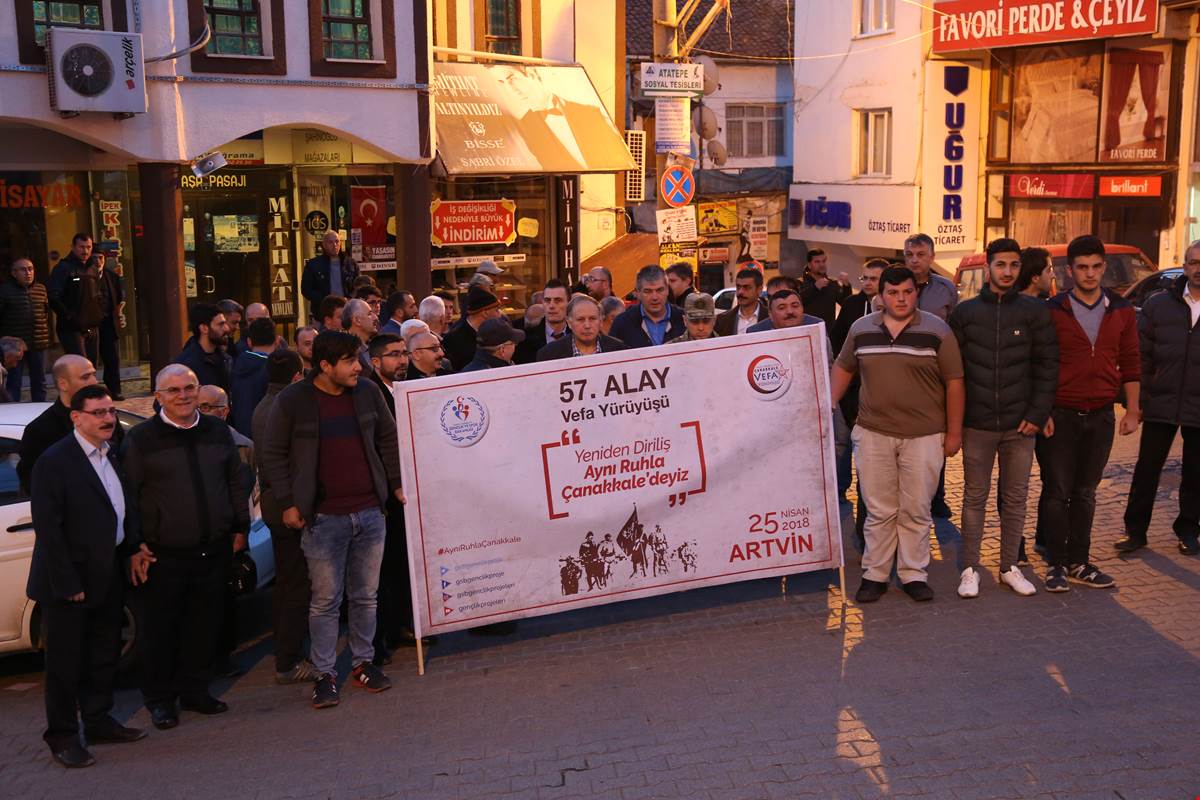 Çanakkale Zaferi'nde destanlaşan ve tarihe sığmayan kahramanlıklarıyla anılan 57. Piyade Alayı şehitleri, Artvin’de sabah namazının ardından "57. Alay Çanakkale Vefa Yürüyüşü" ile anıldı.