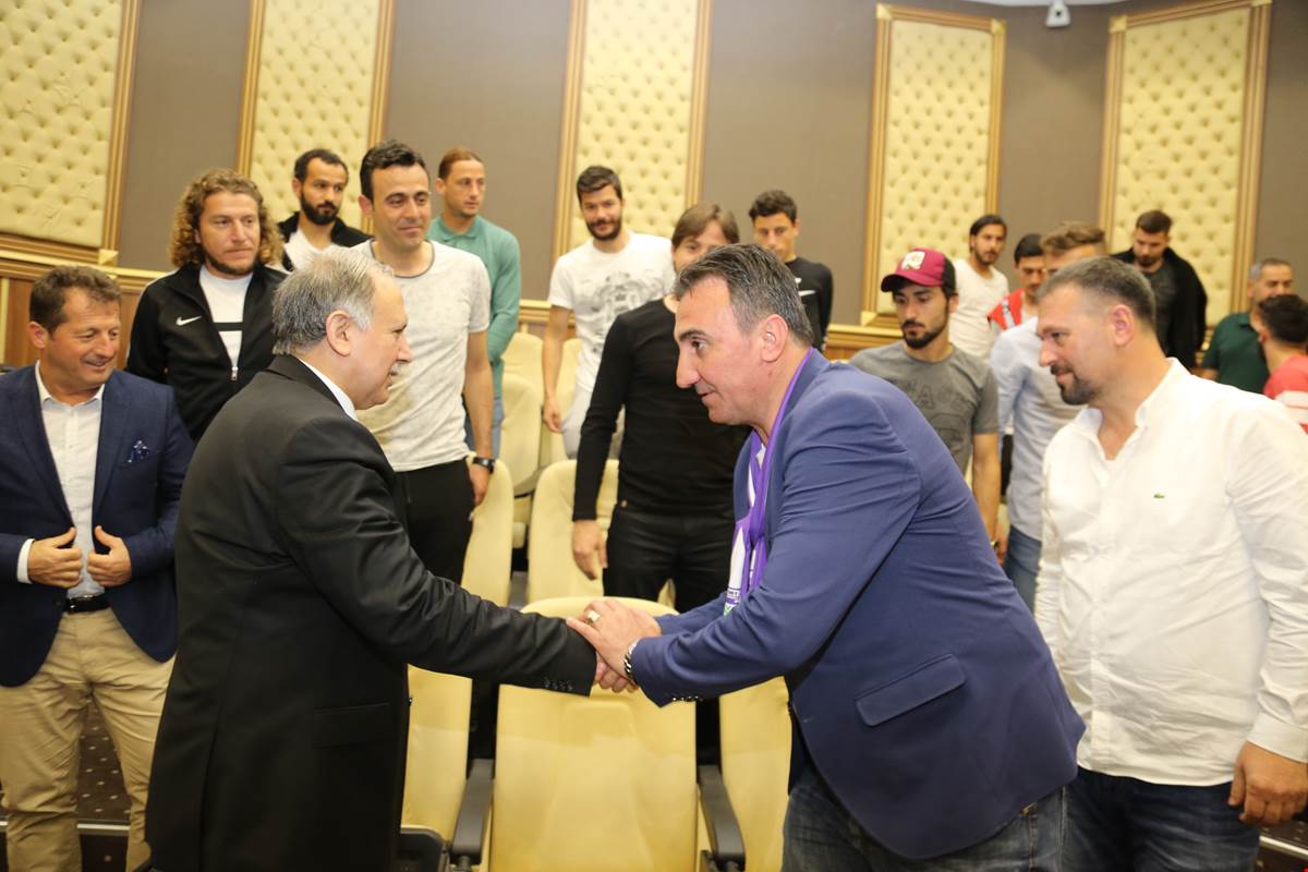 Konuşmaların ardından Vali Doğanay, futbolcuları ve teknik ekibi teke tek kutlayarak, 3 ligde başarıl bir sezon geçirmeleri temennisinde bulundu.