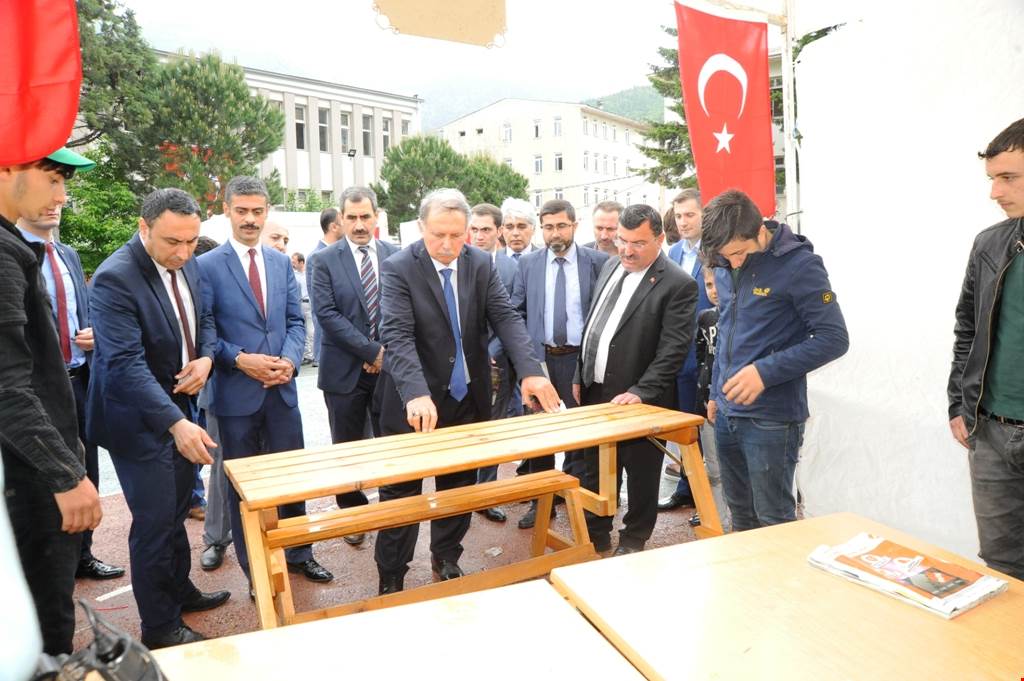 Açılış Kurdelesini Vali Ömer Doğanay ve beraberindekiler birlikte kestiler. Okulun öğretmenlerinin nezaretinde öğrencilerinin öğretim programı çerçevesinde ve kendi ilgi alanları doğrultusunda belirledikleri konular üzerine araştırma yaparak araştırmalarının sonuçlarını sergileyebilecekleri ve eğlenerek öğrenebilecekleri bir ortam sunan mesleki ve teknik eğitim fuarı açılışında konuşan Vali Ömer Doğanay öğrencilere çok önemli nasihatlerde bulundu.
