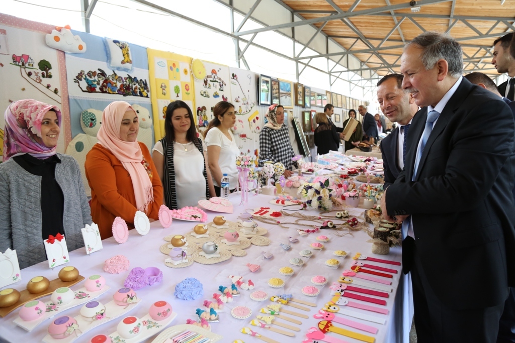 İlçe merkezindeki Halk Pazarındaki serginin açılışına Vali Ömer Doğanay, eşi Esma Doğanay Hanımefendi, İlçe Kaymakamı Muhammet Furkan Sancaktutar, İl Milli Eğitim Müdürü Abdulcelil Kahveci, İlçe Halk Eğitim Müdürü Faruk Orhan, kurs eğitmenleri, kursiyer ve vatandaşlar katıldı.