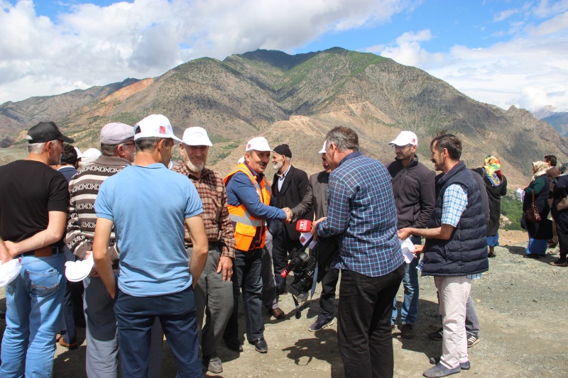 Farklı noktalarda katılımcılar için hazırlanan tanıtım afişlerinin önünde vatandaşları bilgilendiren ve vatandaşların sorularına cevap veren Yusufeli Belediye Başkanı Eyüp Aytekin konuşmasında, “Babalarımızdan ve dedelerimizden miras almış olduğumuz baraj ve yeni yerleşim sorununu, sizlerle beraber evlatlarımıza ve torunlarımıza bırakmayacağız.” dedi.