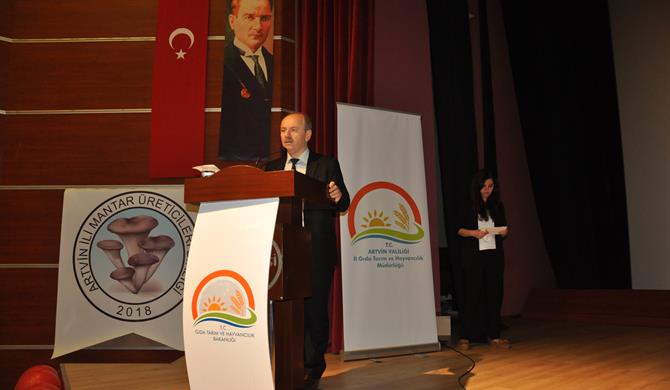Daha sonra Orman Genel Müdürlüğü Başmüfettişi Ömer Naci Kaya mantar yetiştiriciliğini dünü ve bugünü, ülke ekonomisindeki yeri, yetiştirme teknikleri, mantar çeşitleri ve kayın mantarı yetiştiriciliği hakkında sunum yaptı.