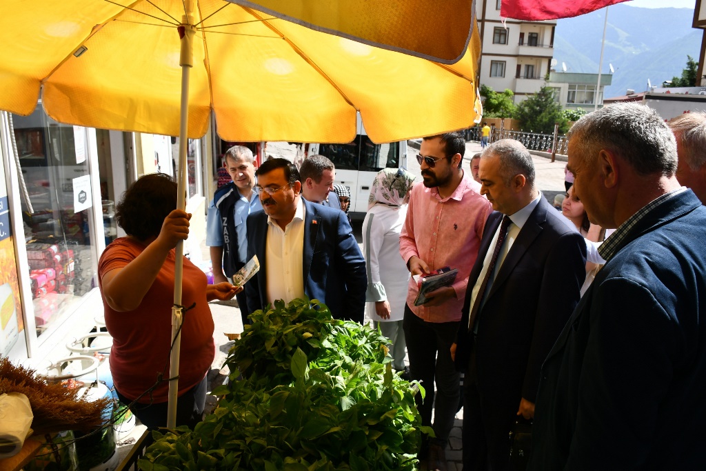 Teşkilat mensupları bröşür dağıtarak 24 Haziran seçimlerinde AK Parti’ye ve Cumhurbaşkanı Recep Tayyip Erdoğan’a Artvin’den güçlü destek içinde esnaftan oy istediler.