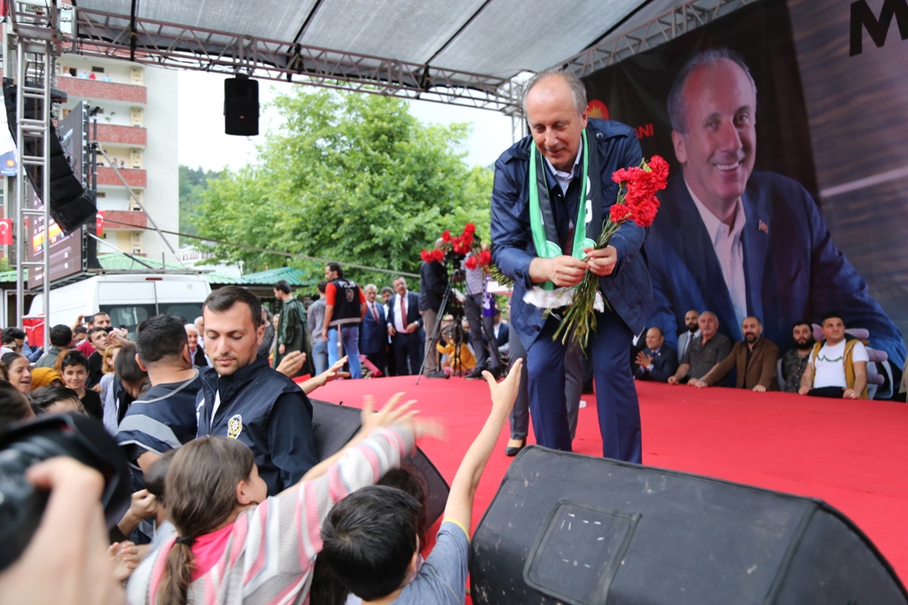 Artvin 70 ise Borçka 80 olması lazım. Türkiye’de sadece Borçka’da planlı ilçe mitingi burada. Kendimi size sizi de Allah’a emanet ediyorum” diyerek sözlerini tamamladı. Miting sonrasında mitinge katılanlara karanfil dağıtan Muharrem İnce’ye Borçka İYİ Parti ilçe Başkanı Recep Çırak tarafından çiçek takdim edildi.
