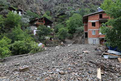 Artvin Merkeze bağlı Aşağı Maden Köyü’nde Evleri Sel Bastı, Araçlar Toprak Altında Kaldı