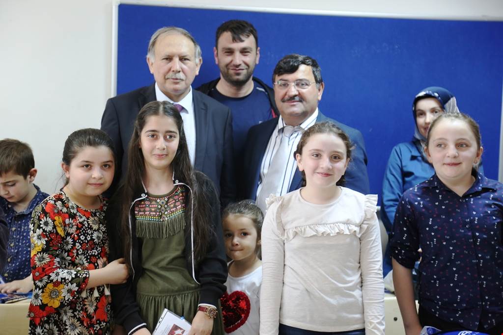 Artvin Valisi Doğanay ve Belediye Başkanı Mehmet Kocatepe sınıfları tek tek dolaşarak öğrencilere karne ve hediyelerini dağıttı.